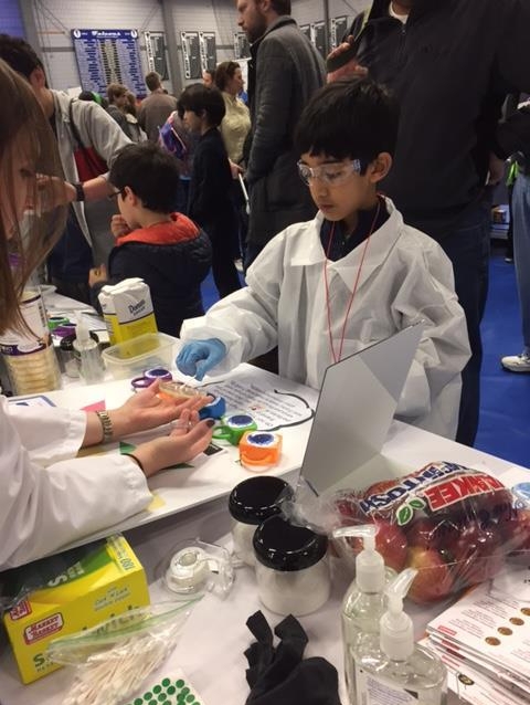 Visitors to the booth took a quiz to find out which type of microbe best fits their personality, saw a demonstration of how T cells help to fight harmful bacteria and viruses in the body, and created their own microbe cultures by swabbing the inside of their mouths with a Q-tip and applying the saliva sample to an agar plate (small plate with bacterial nutrients) that they could take home with them.